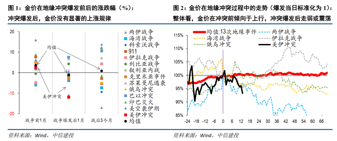 (1)历史经验显示,地缘冲突爆发后,金价表现整体较弱,下跌甚至是常态,其上涨更多发生在冲突爆发前