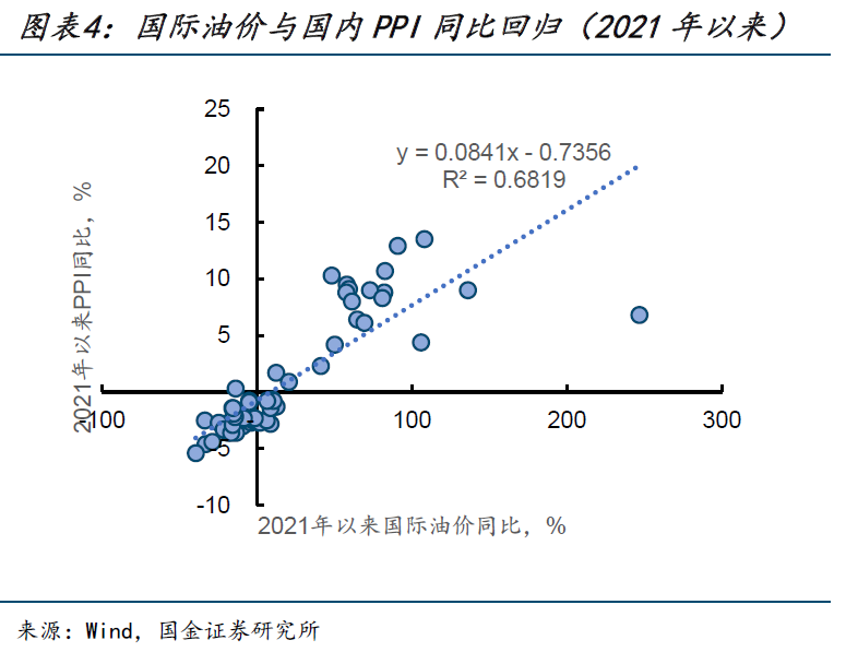 综合两类方法,以0.6左右的弹性系数作为中性假设进行测算。若后续油价中枢维持在90美元/桶附近,PPI同比将提前至3月转正,较年初的市场一致预期显著提前。
