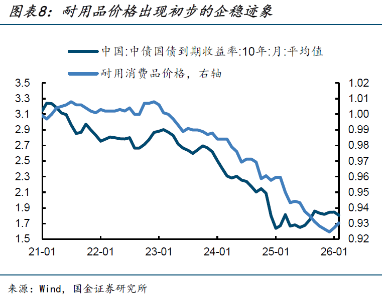 耐用消费品视角。耐用品价格具有较强的粘性,其走势往往被视为经济周期方向的确认性指标。以日本为例,其耐用品价格在经历长期底部盘整后的回升,曾与利率中枢形成共振上行。近期值得关注的一个变化是,耐用消费品价格已连续第二个月出现回升。虽然这一回升存在季节性因素(春节前后的消费旺季容易环比企稳),但从强度上看,已强于过去三年的季节性回升幅度,持续性上来看,也已经是2022年以来首次连续两个月环比正增。后续这一价格回升是否得以延续,可以作为判断通胀能否持续向下游传导的指标之一。