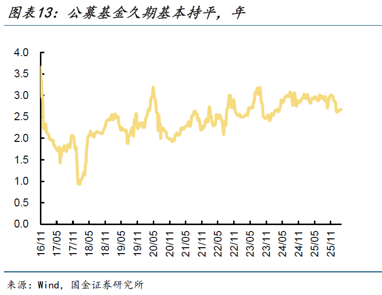 久期重新回落。3月9日至3月13日,公募基金久期中位值下降0.04至2.68年,处于过去三年24%分位。久期分歧度指数下降0.02至0.55,处于过去三年64%分位。