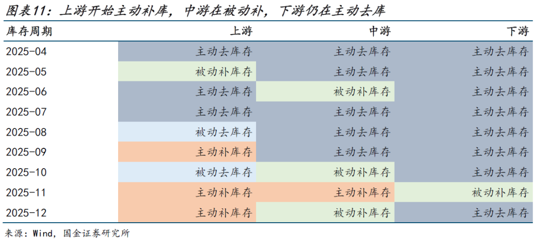 往后看,建议继续跟踪产业链上、中、下游库存周期的演变。若后续观察到中下游行业由去库逐步转向补库,则说明价格信号正被更广泛的下游所接受,本轮价格向下游传导的持续性也将明显增强。